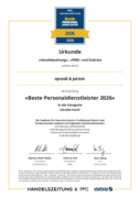 En 2026, nous figurons à nouveau parmi les meilleurs prestataires de services en recrutement en Suisse dans les catégories Executive Search et Professional Search.